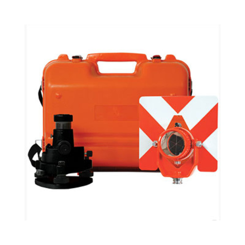Omni’s #34100 Leica “style” prism assembly features a rain hood to protect the prism from rain, snow, and dust. The prism is adjustable and flexible in two axes. The M8 and 5/8″ thread adapter insures compatibility with other prisms.