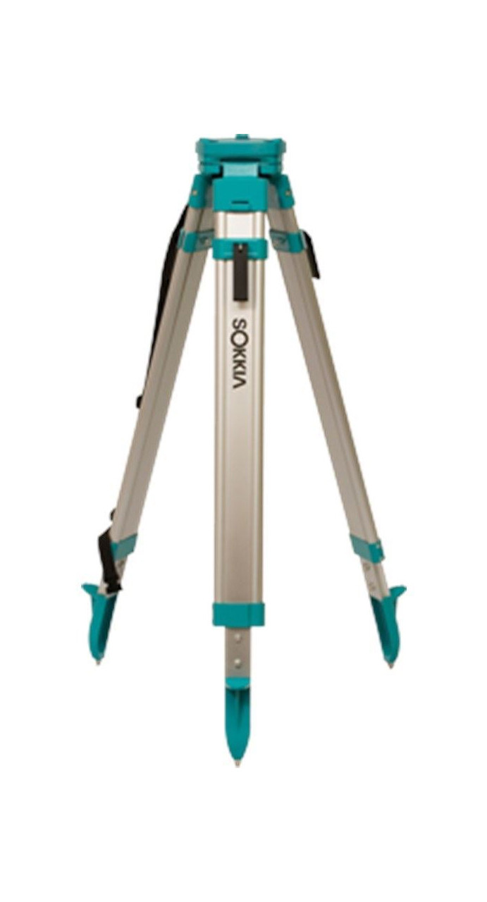 The tripod’s extension legs extend from 42 to 63 inches high. The legs can be secured into position with the clamp locks. The feet are pointed, made of steel, and feature long spurs to ensure the device’s stability. It features standard 5/8 X 11 threading. This aluminum tripod is silver and features green hardware as well as an anodized powder-coating to protect against the elements. Included is a plumb bob hook and a shoulder strap for easy carrying!